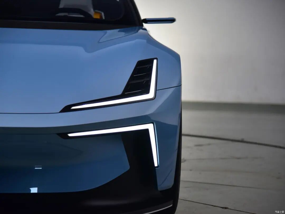 新车采用分体式灯组设计,上半部分灯组集成远近光功能,类似水平对称样式的L形日行灯带看上去颇为干练,同时Polestar 6取消了格栅设计,车头下方的黑色空气动力学套件营造出性能的味道。