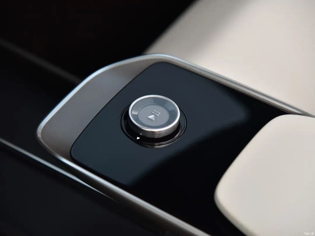 纵置中控屏幕尺寸较为可观,推测绝大部分多媒体、车辆设置等功能均通过该屏幕实现,此外新车在中央扶手前方还提供了多媒体控制旋钮,便于行车时盲操作。