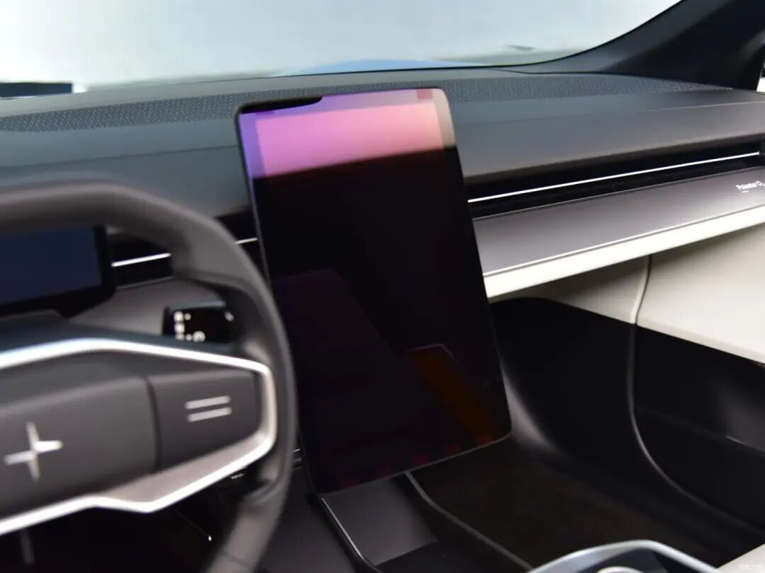 Polestar 6的内饰设计非常简洁,基本上很难看到物理按键存在,上深下浅的配色方案较为典雅,方向盘采用上下平底设计,仪表则采用小尺寸液晶屏幕,由于展车未通电,我们无法看到屏幕点亮后的状态。