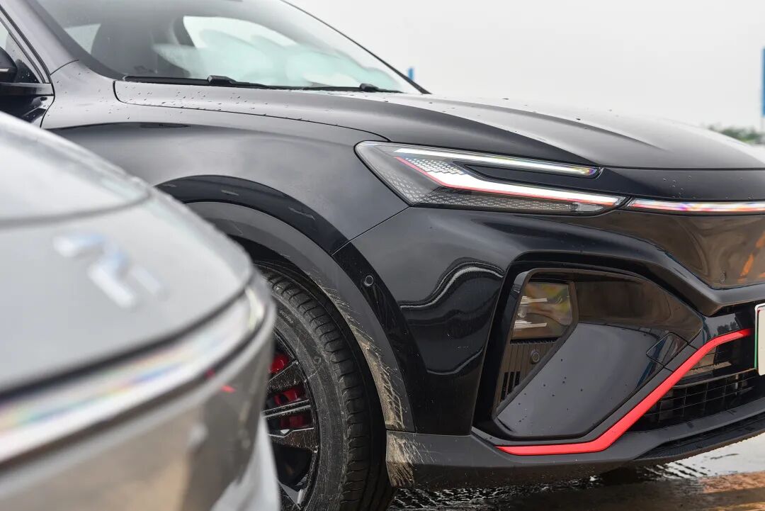 制动体验,成绩姑且不谈,因为场地为水泥路面且积水较多。就脚感而言,比较线性,制动力释放也颇为均匀。全力踩下制动踏板后,车身姿态整体稳定,车尾也没有多余的摆动。通过上图可以看到,前悬架仅有轻微压缩,可说明MARVEL R前悬架调校偏硬朗,对于车身可提供有力的支撑。总体而言,MARVEL R制动系统的调校属于无需适应的类型,放在日常驾驶中也会有着喜人的表现。