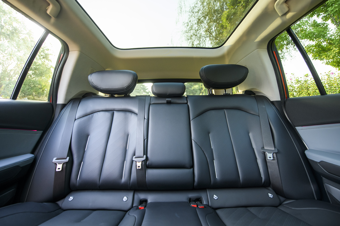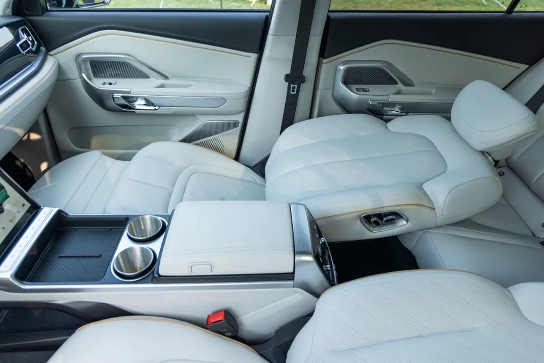 座椅采用Nappa真皮包裹,触感舒适,内部填充柔软。配置方面,前后排座椅均标配3挡可调加热/通风功能,前排座椅还支持5种模式3挡强度可选的按摩功能以及副驾沉浸式座椅(采用宽体头枕和椅垫,椅背可放倒至167°,腿托可调至全平)。
