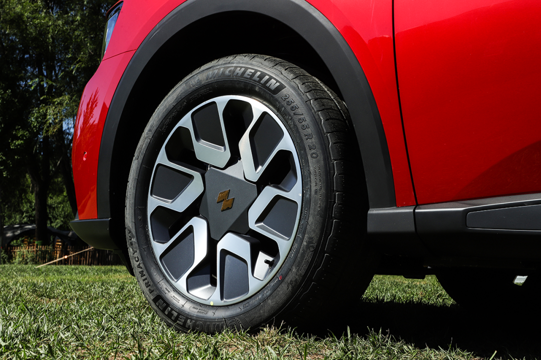 轮圈尺寸达到20英寸,提供运动/低风阻两种造型可选。轮胎方面,与之匹配的是主打静音、舒适的米其林Primacy系列轮胎,规格为255/55 R20。