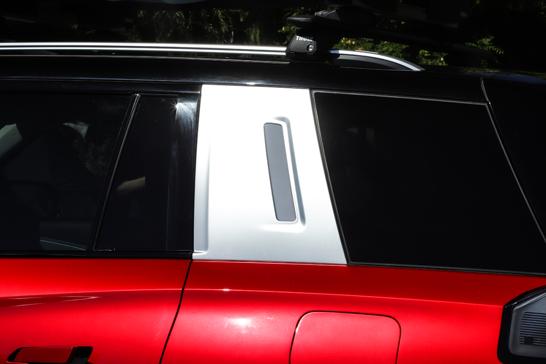 车侧造型足够简洁,最大的亮点在于C柱中间的白色灯带(官方称之为动态能量堆栈),可以显示车辆的电量以及充电状态,且饰板的材质及颜色可供用户自由选择,很是新颖。车身尺寸方面,新车的长宽高分别为4915/1962/1755mm,轴距为2910mm。