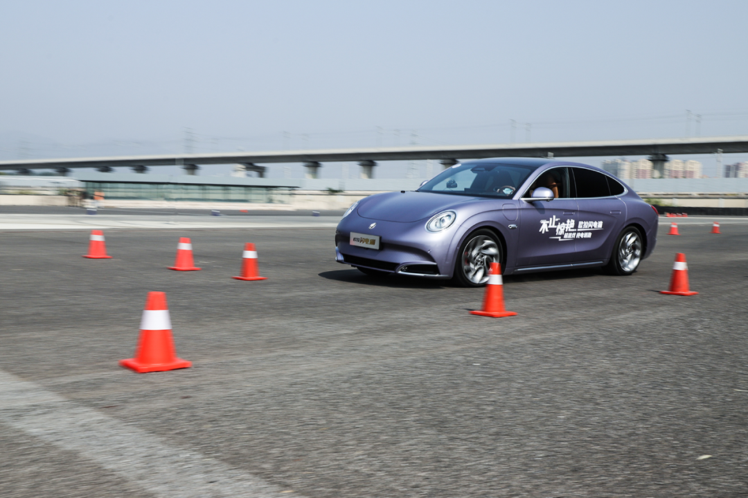 隔音方面,即便此次试驾车型还不是最终的量产版,但在NVH上已经呈现出较高的水准。电机快速运转时的电流声能够被很好地抑制,轮胎快速卷起场地内的砂石时,底盘与路面之间也有着较好的隔绝感。