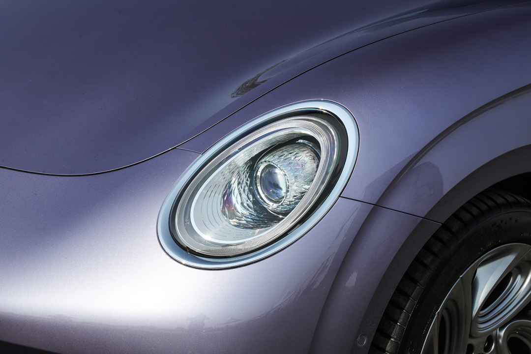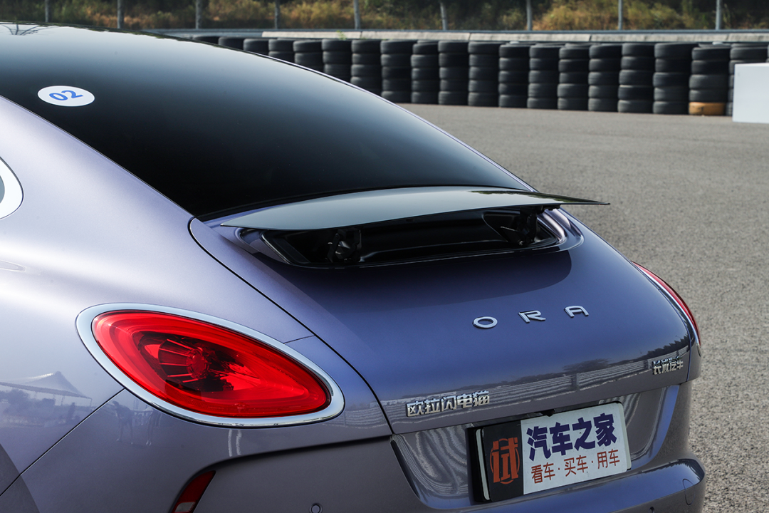 尾部造型简约但不简单,尾灯造型与前大灯形成首尾呼应,复古范儿依旧十足,车顶线条与车身腰线最终汇聚在车尾处,视觉上有着很强的一体感。自适应电动尾翼也是一大亮点,在达到一定时速后会自动升起。当然,你也可以在车内选择手动开启,从而收获更多的注目礼。