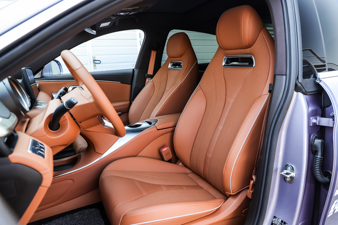 前排座椅为一体式设计,座椅造型视觉上偏运动,但内部填充物相对柔软,兼顾支撑性的同时照顾到了乘坐舒适性。配置方面,座椅加热、通风、按摩等功能一应俱全,足够让人满意。