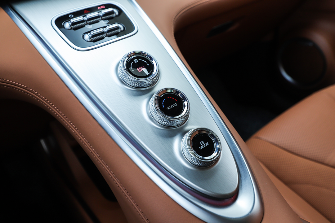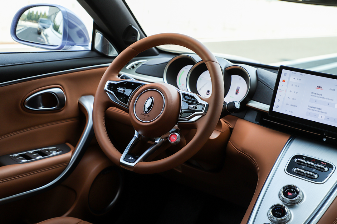 内饰座舱采用“极简”的设计思路,平直的线条带来相对开阔的车内视野,T型镂空中控台采用大面积皮质包裹,仅保留了少量的实体按键,让车内风格向“GT跑车”看齐。