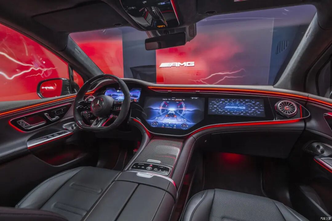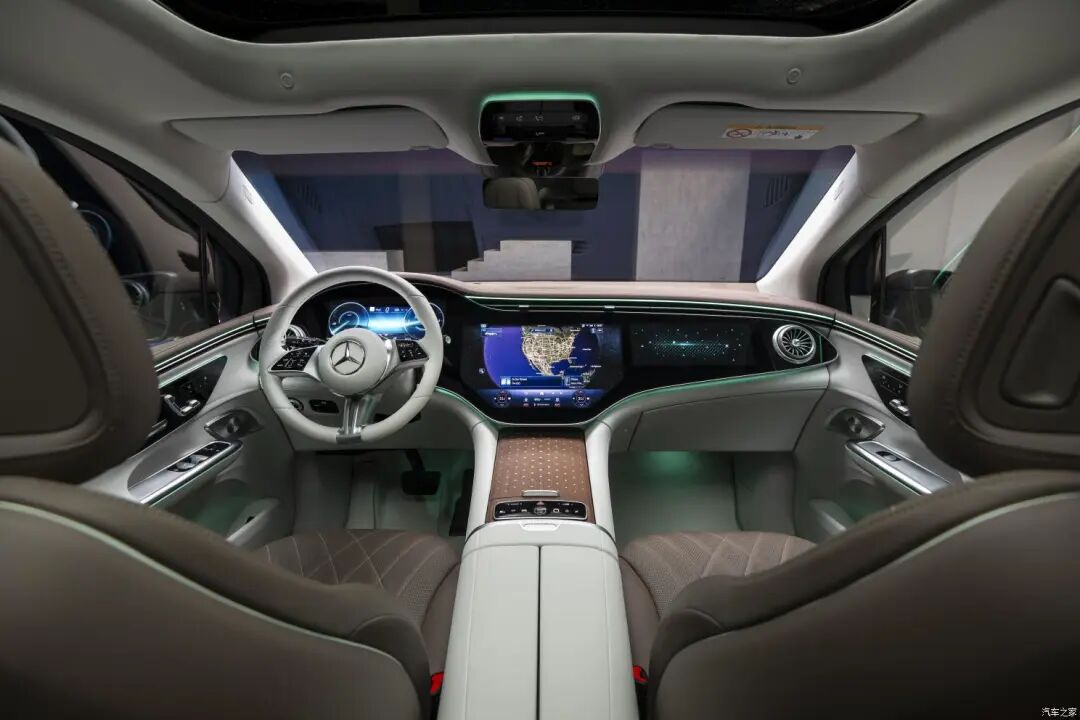EQE SUV内饰采用了由全液晶仪表、大尺寸的中控屏以及副驾屏幕组成的三联屏设计,不同于其它品牌多屏设计的简陋、干瘪,奔驰切实做到了让豪华永伴,堪称多屏界的“模范生”。