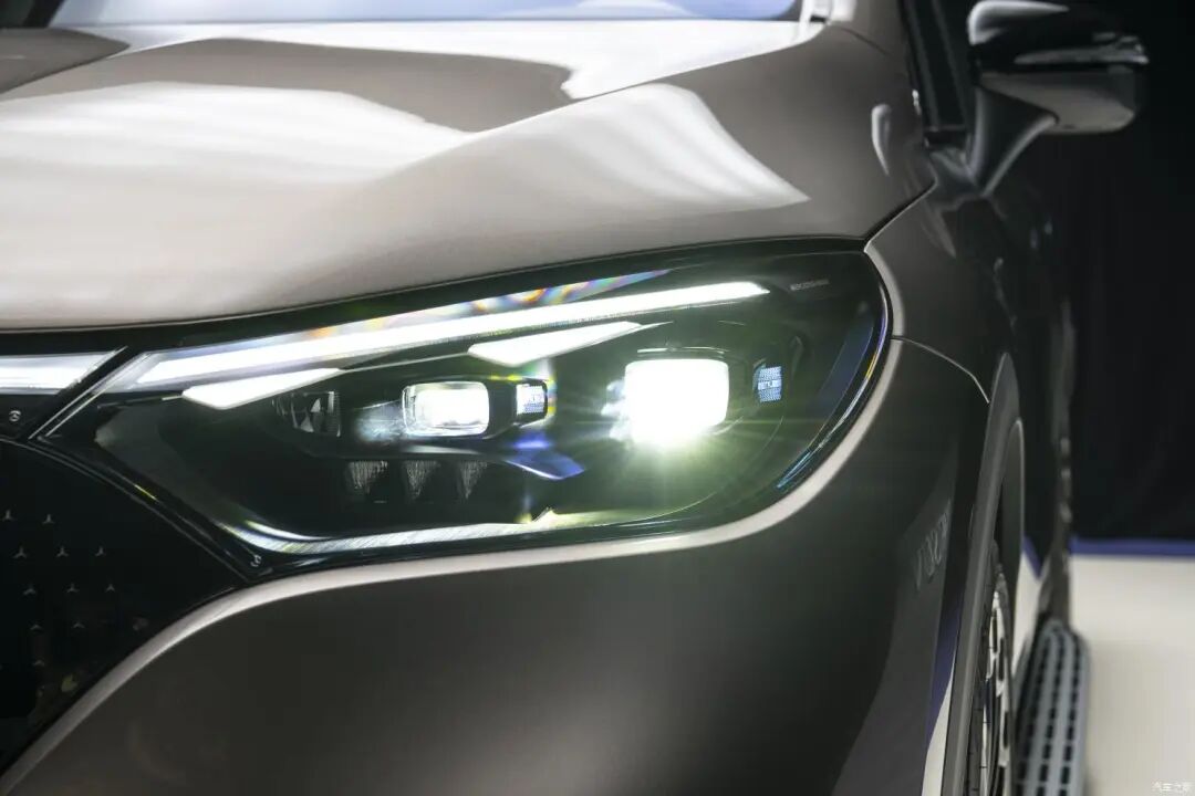 前大灯组造型与EQE相同,均采用不规则形状和全LED光源。此外,EQS配备的贯穿式的灯带也被其采用,这是EQE上没有的。