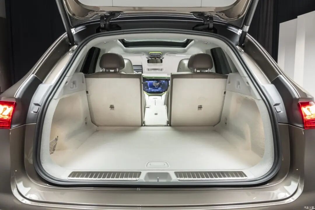 这台海外版的EQE SUV的车身尺寸目前还不确定,但它的国产申报信息已经有了。国产EQE SUV的长宽高分别为4880/2032/1679mm,轴距为3030mm,车宽和轴距已经超过了GLE,长和高还差一点。