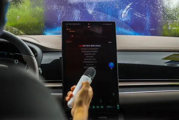 车载KTV功能并非汉EV首次搭载,相比目前常见的蓝牙麦克风方案,汉EV匹配接收器传输的麦克风,可以做到即插即用。此外,麦克风拾音灵敏度提升,人声更清晰、更浑厚。