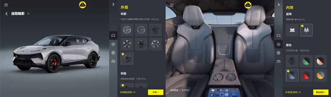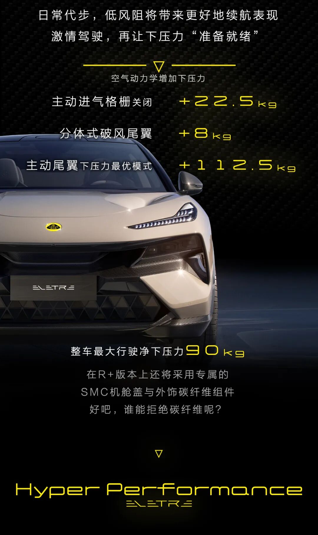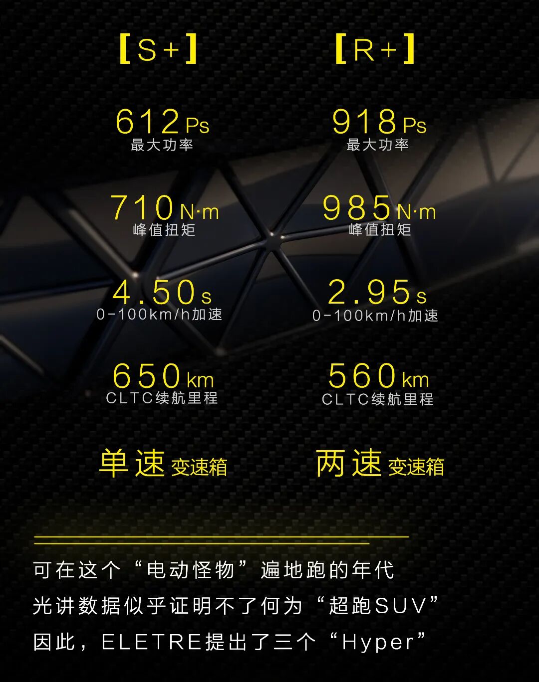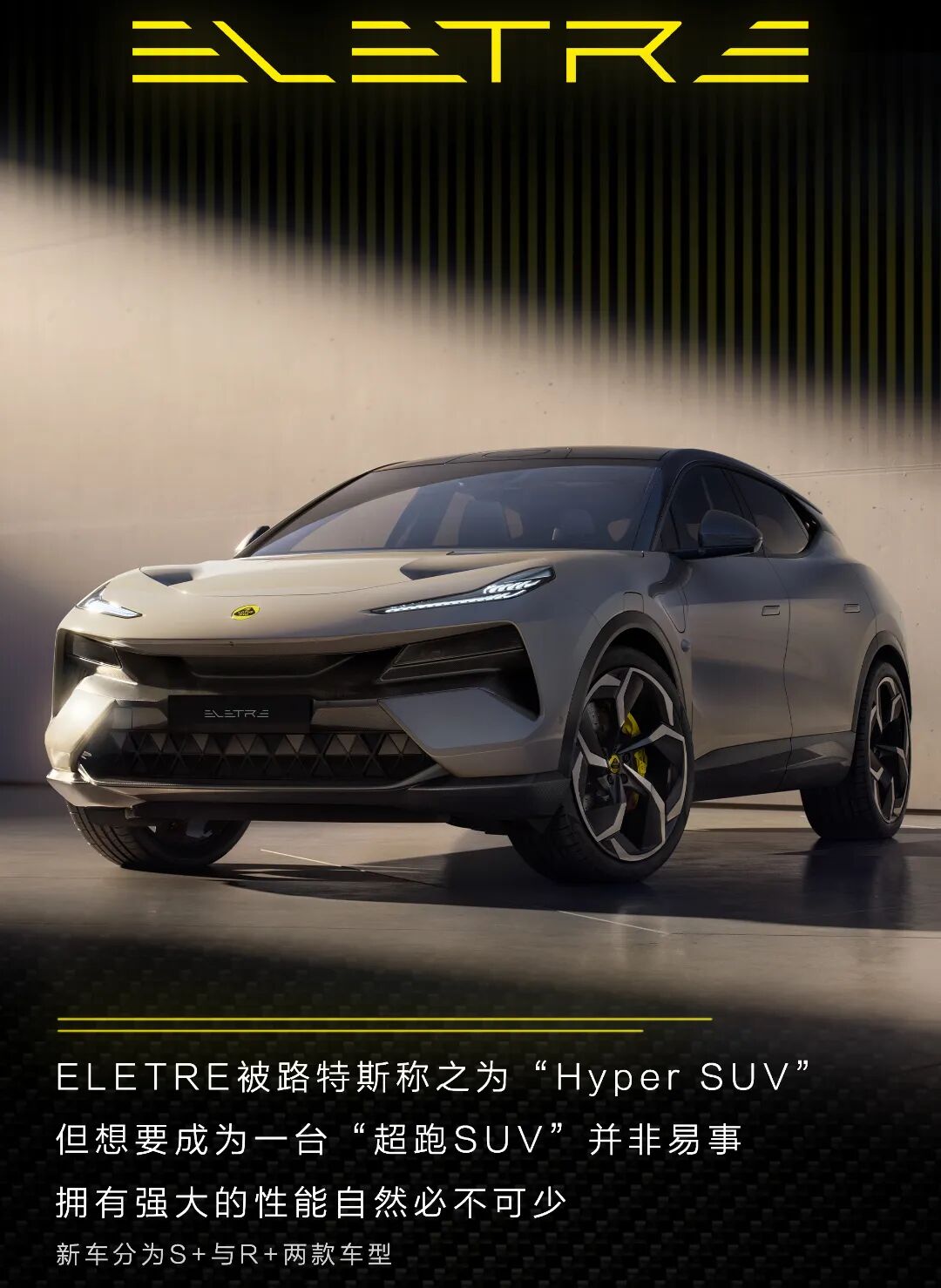 价格方面,路特斯ELETRE共推出2款车型,其中S+车型82.8万元起售,R+车型102.8万元起售,并且提供丰富的选装配置。