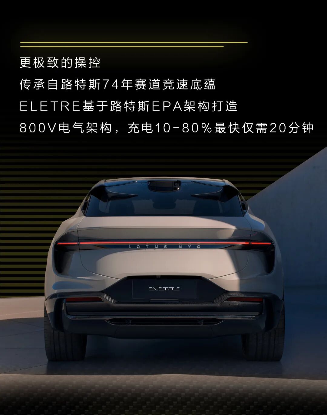 此外,路特斯还将为ELETRE提供22kW智能家充桩,并在城市核心商圈及地标位置,逐步建立路特斯闪充站,支持800V高压平台,最快可在20分钟内将电量从10%提升至80%。