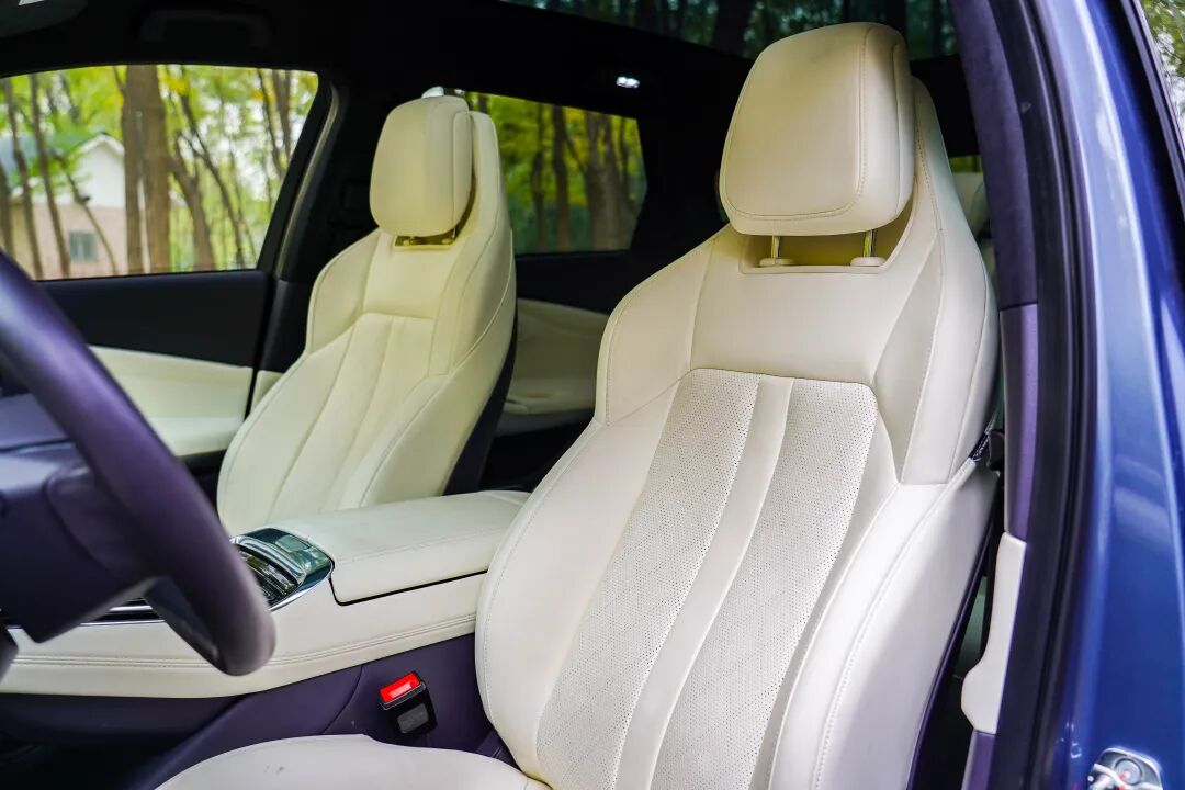 如果说之前的AION LX在配置上对豪华是浅尝辄止,那么现款车型似乎要力求做到同级的参考,试驾车型采用Nappa真皮座椅,前排提供座椅通风/加热/电动调节。