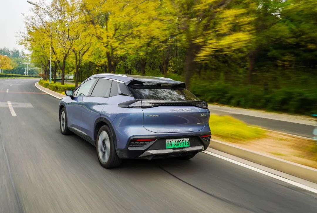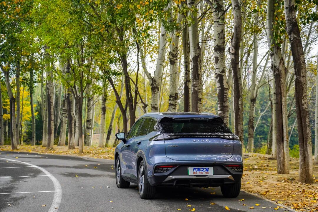 此外,AION LX Plus还新增天际灰、脉冲蓝(文中车型)两款车身颜色,视觉上很显高级。车尾造型紧凑且富有层次感,两段式尾翼和贯穿式尾灯依旧得以沿用,运动氛围与辨识度均不俗。