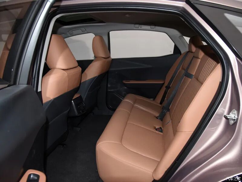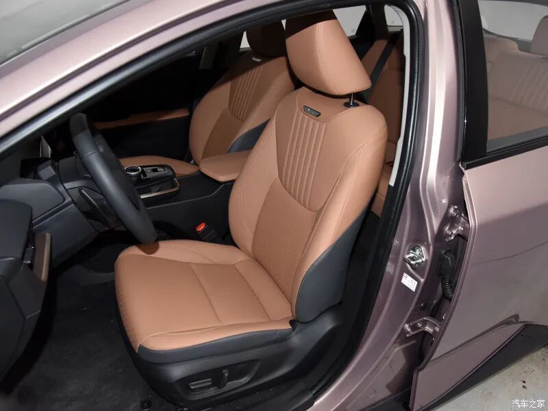 实拍车型采用棕/黑拼色座椅,靠背处的带状缝线和徽标装饰提升了高级感,在配置上主副驾驶均提供电动调节功能。