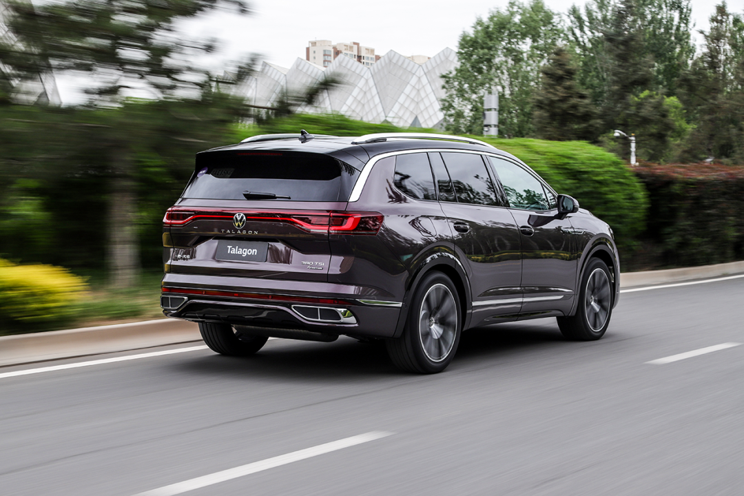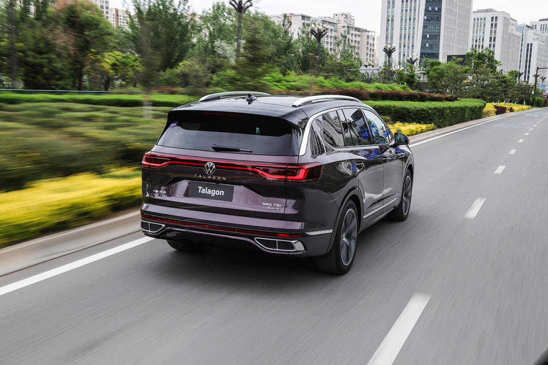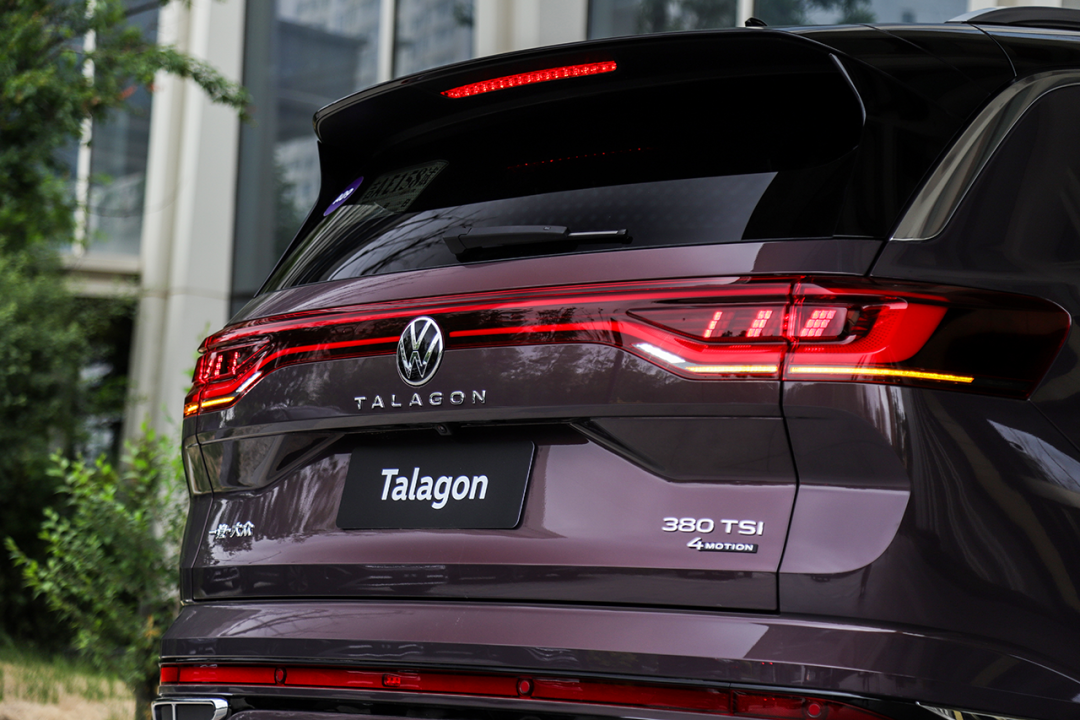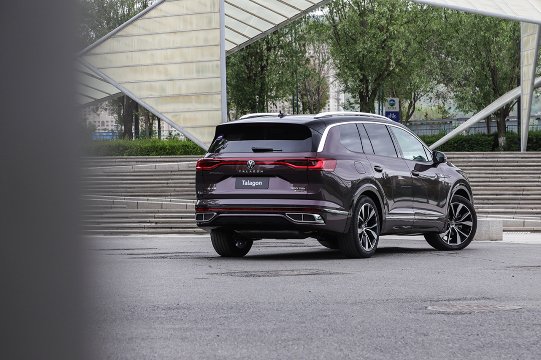尾部造型设计饱满许多,气势十足,传递出一种稳重感,符合中大型SUV的气场。双边共四出的镀铬排气实际上仅为装饰件,从远处看几乎可以做到“以假乱真”的效果,然而总觉得不如真排气口来得简单实在。贯穿式尾灯是一大亮点,位于中间的大众车标可被点亮,彰显出不凡的精致感与独特的辨识度。