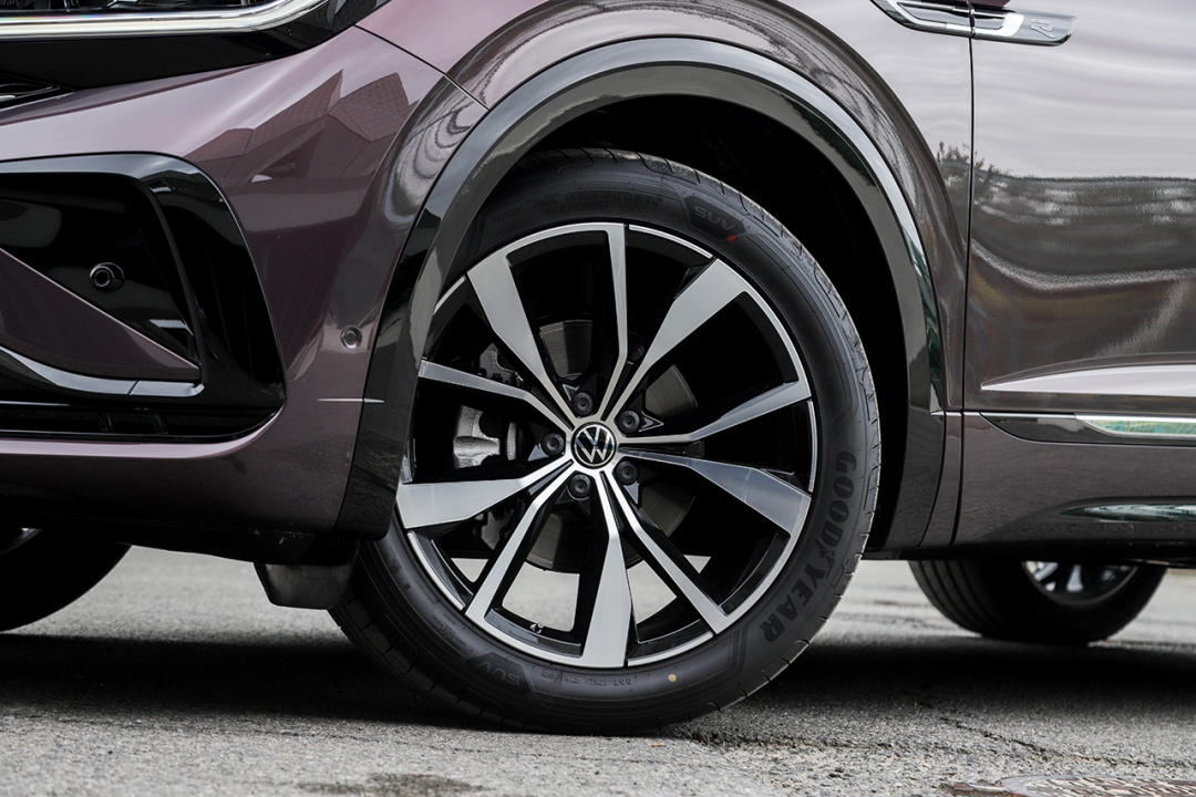 双五辐花瓣状轮圈造型似曾相识,尺寸达到21英寸,与之匹配的是固特异EAGLE F1系列轮胎,规格为265/45 R21。在非R-Line车型上,将配备低风阻设计的轮圈,官方表示,与普通轮圈相比,风阻优化15%-25%。