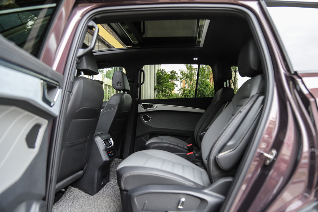 第二排座椅前后位置适中的情况下,第三排可以提供较为可观的乘坐空间,横向空间的表现也不差,两人乘坐并不拥挤。第三排配备了空调出风口、杯架、USB电源等配置,满足100km以内的出行需求,我个人觉得毫无压力。满载的情况下,后备厢的容积同样可观,毕竟车身尺寸够大,先天优势明显。