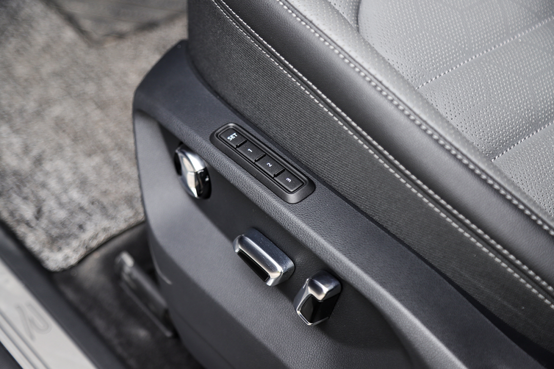 座椅表面的皮质更为柔软,乘坐舒适性很高,在R-Line车型上,座椅靠背带有“R”的刺绣标识。多向电动调节和主驾驶座椅记忆功能均有配备,舒适性配置方面,前排支持座椅加热功能。