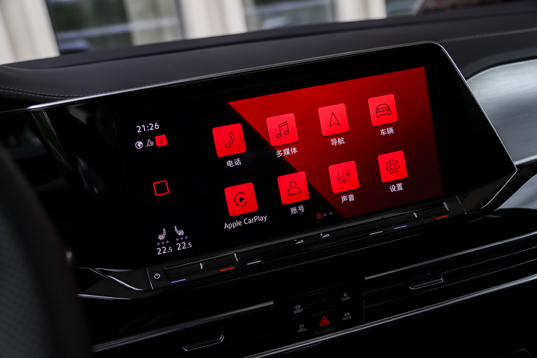 中控屏尺寸达到12英寸,搭载大众最新的CNS 3.0系统,支持导航、无线CarPlay、车联网、语音识别、OTA升级等,功能方面的表现不必担心。和高尔夫8相比,这套车机系统的显示界面几乎没有变化,操作逻辑仍然比较复杂,但运行速度得到了优化,卡顿现象减少了许多。