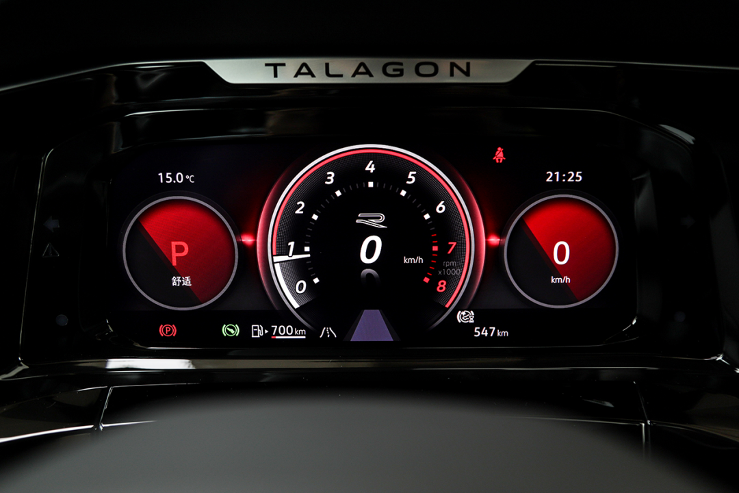 全液晶仪表盘显示效果很出色,在R-Line车型上,提供了专属的UI界面,更具有运动感。液晶仪表盘的尺寸为10.25英寸,以中大型SUV的定位来说,仪表盘尺寸其实还能做得更大些。