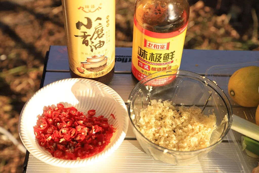 至于蘸料,同为四川人的瑞哥和我一致决议——不要麻酱!我们要回归南方人的生活方式!为此我专门为瑞哥打造了专属的油碟,现切的鲜椒,现磨的蒜泥加上小磨芝麻油,让瑞哥直呼找到了家的感觉。
