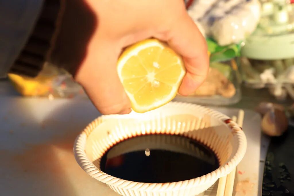 而我则选择了生抽蘸料,加一点柠檬汁能增加别样的风味。