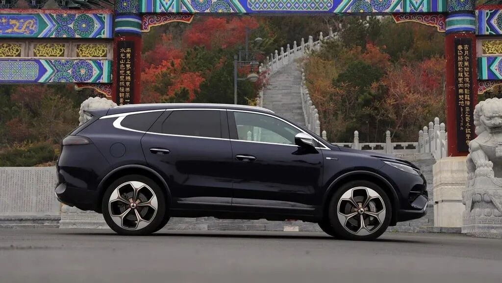 腾势X PHEV,混动系统最大输出功率431kW(586马力),最大输出扭矩950N·m,车长4米89,轴距2米82。