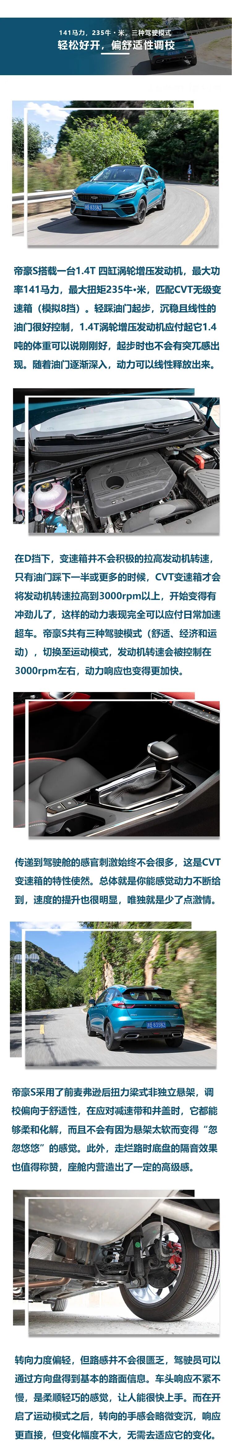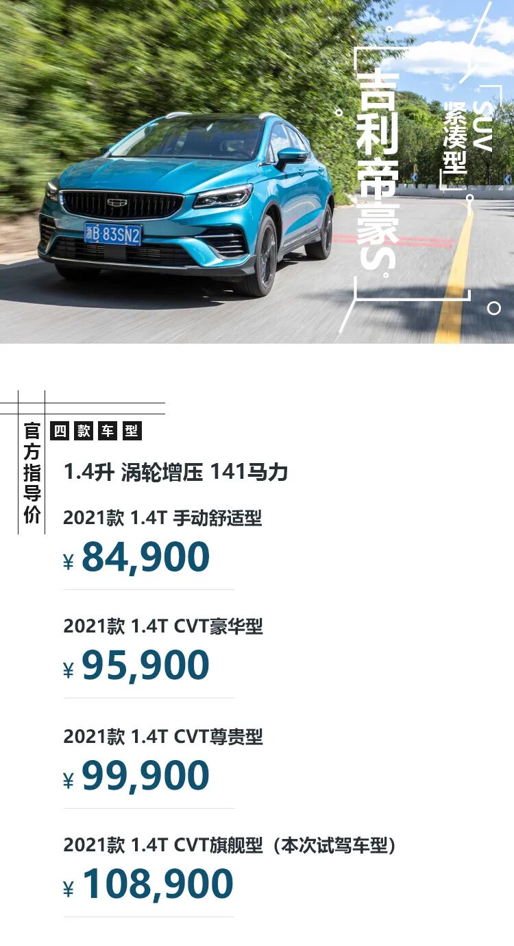 前不久,吉利帝豪S正式上市了,新车共推出四款车型,指导价区间为8.49-10.89万元。帝豪S是帝豪家族的一款全新车型,定位为紧凑型SUV,可以把它看作是帝豪GS的姊妹车型,未来两车将会同堂销售。我们也对其进行了试驾体验,快通过下面的一组长图了解一下吧。