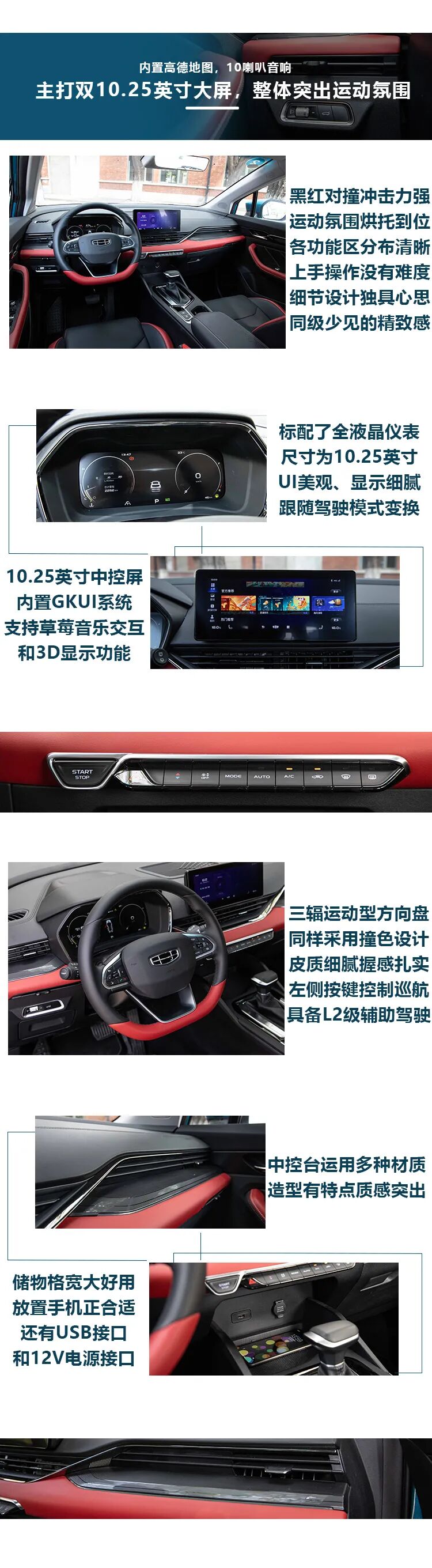很明显,这是一款主打年轻消费市场的车型,从外观上的悬浮车身造型、黑化轮圈,到座舱里的红黑撞色设计、一体式座椅,它无不在挑动着万千青年的神经。“颜值先行”的同时还不忘在配置用心,前排座椅加热和L2级别辅助驾驶系统让我印象最为深刻。当然,最硬核的还属驾驶感受,动力衔接顺畅,控制起来很自如,偏舒适性的悬架设定也非常适合基本的家用需求。单从产品力上看,帝豪S具备了在同级别车型中脱颖而出的实力。