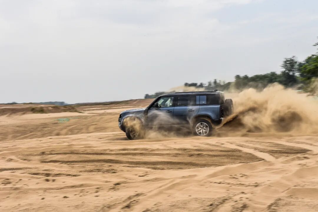 来到沙地之后,由于并不是很松软,所以我们没有对轮胎进行放气。切回到舒适模式,关闭ESP,调至S挡,车辆就能很轻松的甩起来了,伴随着滚滚的黄烟,心情格外的放松,此时此刻我才感觉到一台越野车真正的魔力。