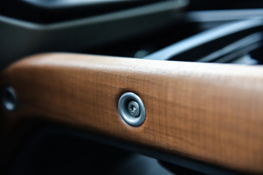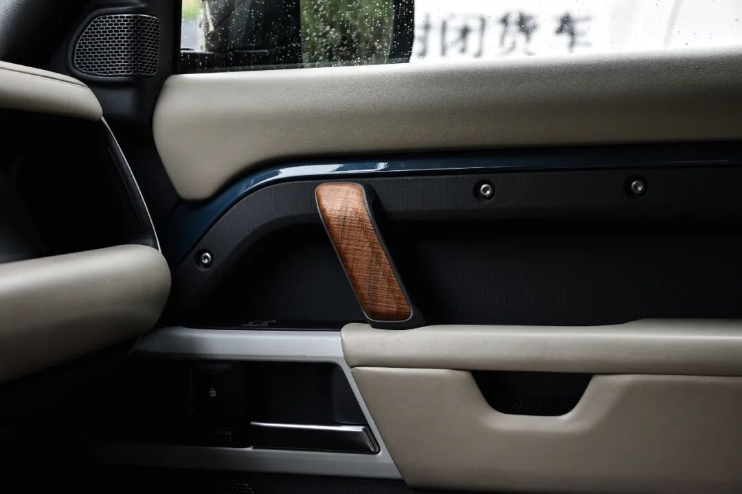门板和地台的位置分布着粗木纹饰板,只通过裸露的螺丝,使其展现出了卫士应有的粗犷一面。这种简单的设计,却让车内别有一番滋味,不得不佩服英国人实在是太会玩了。