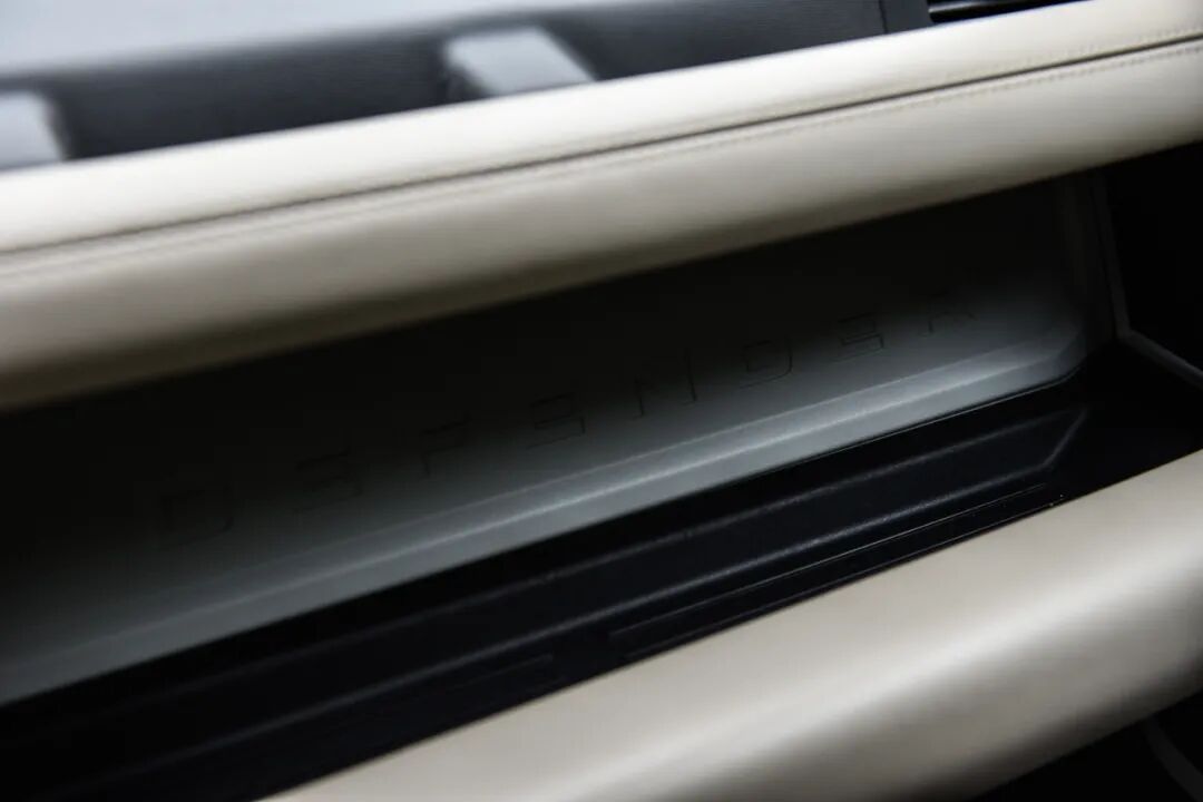 镁铝合金双横梁设计是一大亮点,外部运用皮革包覆,内侧则通过细心推敲,将储物槽、雨伞架和扶手相融合,辅以DEFENDER的标识,精致且实用。