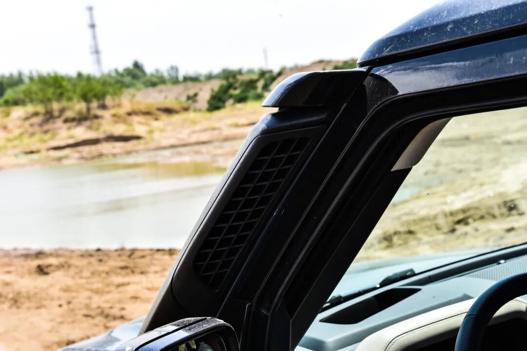 高位进气口(涉水喉)需要花费5865元进行选装,不过选装后并不能提高车辆涉水性能,车辆仍保持900mm的涉水深度,更多的作用则是吸入发动机舱盖上方的空气,减少灰尘的吸入,从而保护发动机。