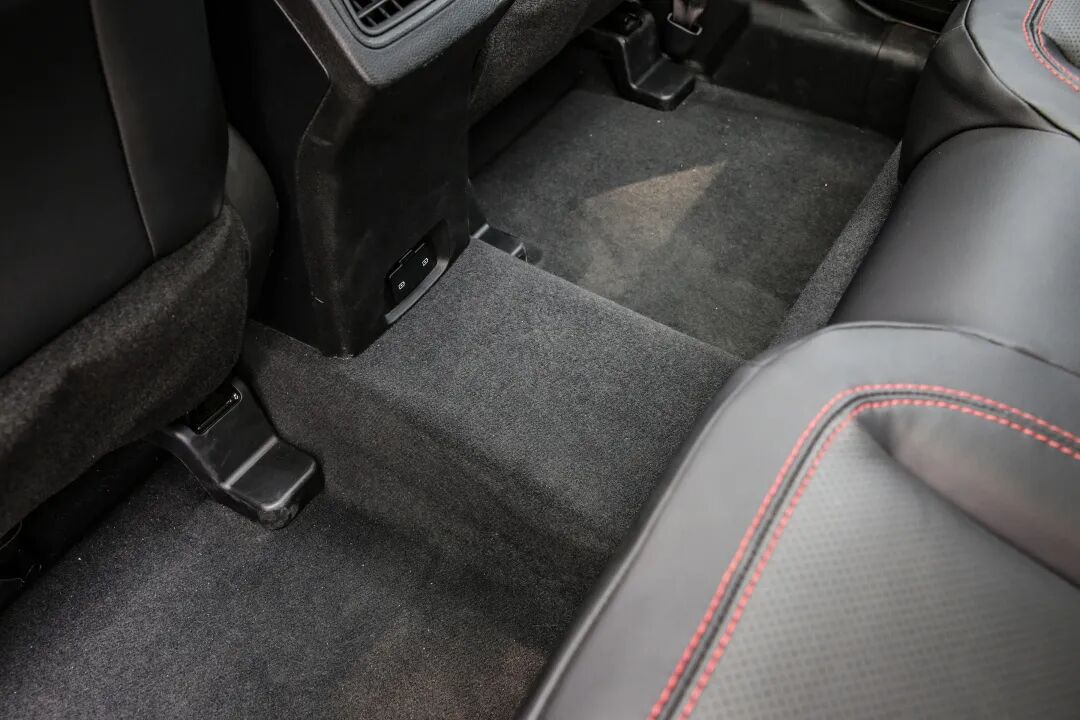 后排座椅风格与前排一致,三个座椅均配备有头枕,同时后排出风口、中央扶手和USB接口也没有缺席。同一体验者坐后排腿部空间2拳,头部空间4指。中央地板凸起较高再加上靠背位置设有扶手,导致后排中央位置不太适合长时间乘坐。