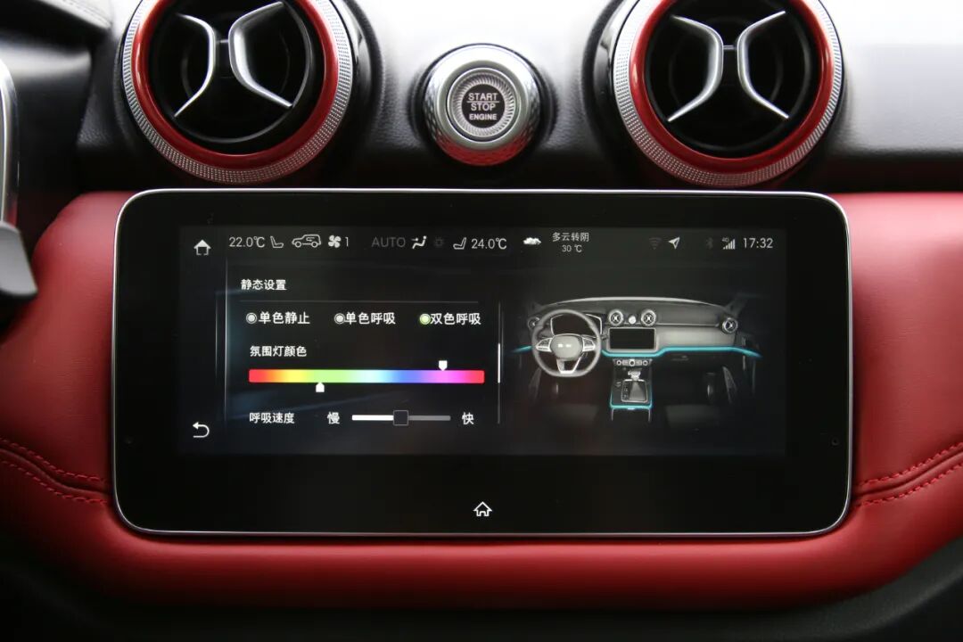 体验车型配备有多色氛围灯,氛围灯支持呼吸功能而且还有音乐律动模式,仪式感满满。