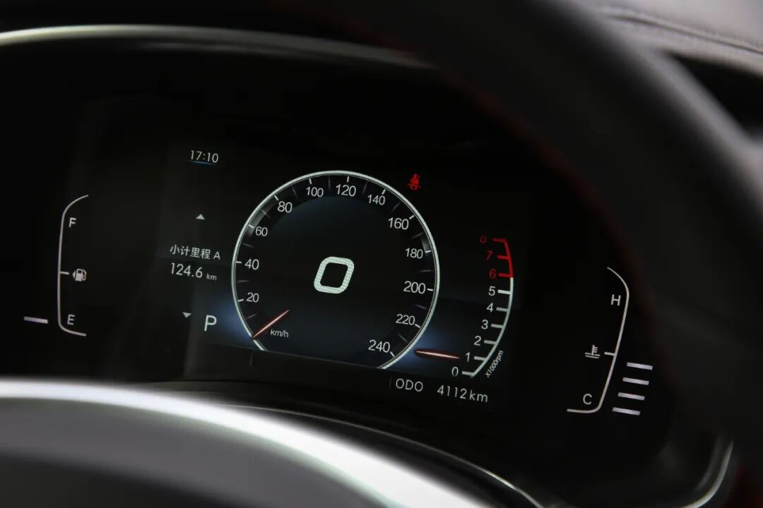 7英寸液晶仪表界面UI简洁,除常规行驶数据外还可显示轮胎胎压、保养信息等内容。