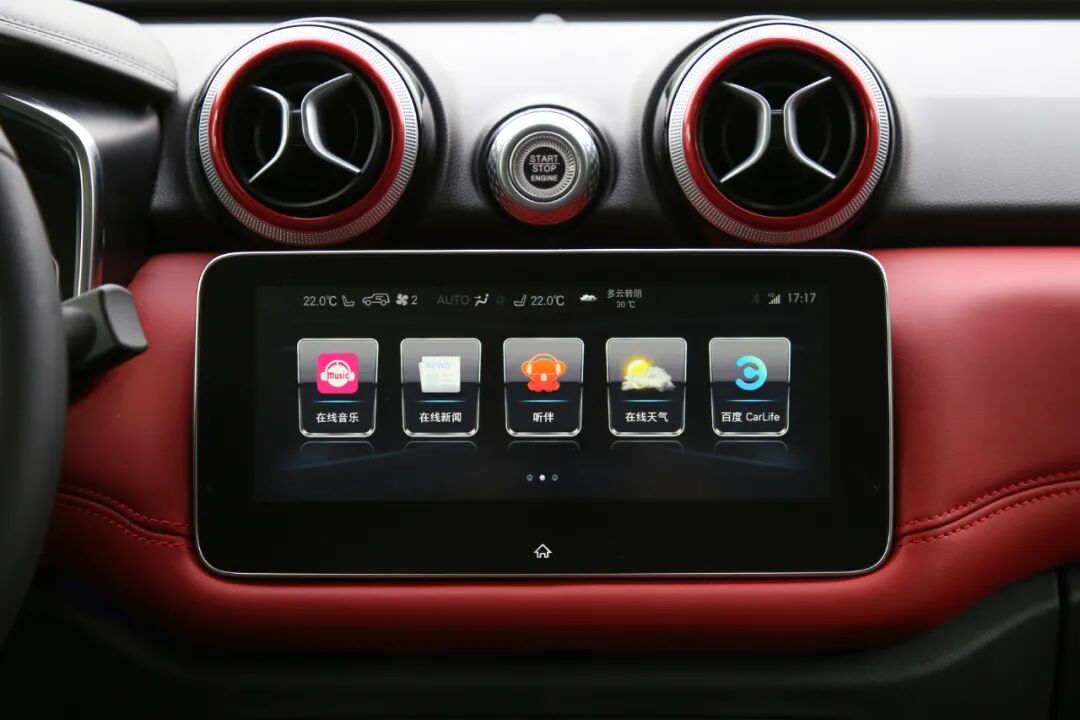 实拍车型内饰采用红黑配色,时尚感得到提升的同时也与外观形成完美呼应。中控台风格简约,横向线条有助于营造宽敞的视觉感受。圆形空调出风口造型我们并不陌生,加入镀铬和红色装饰之后质感得到提升。10.4英寸中控大屏是全系标配,有大屏的同时还保留了实体按键,操作便利性不错。