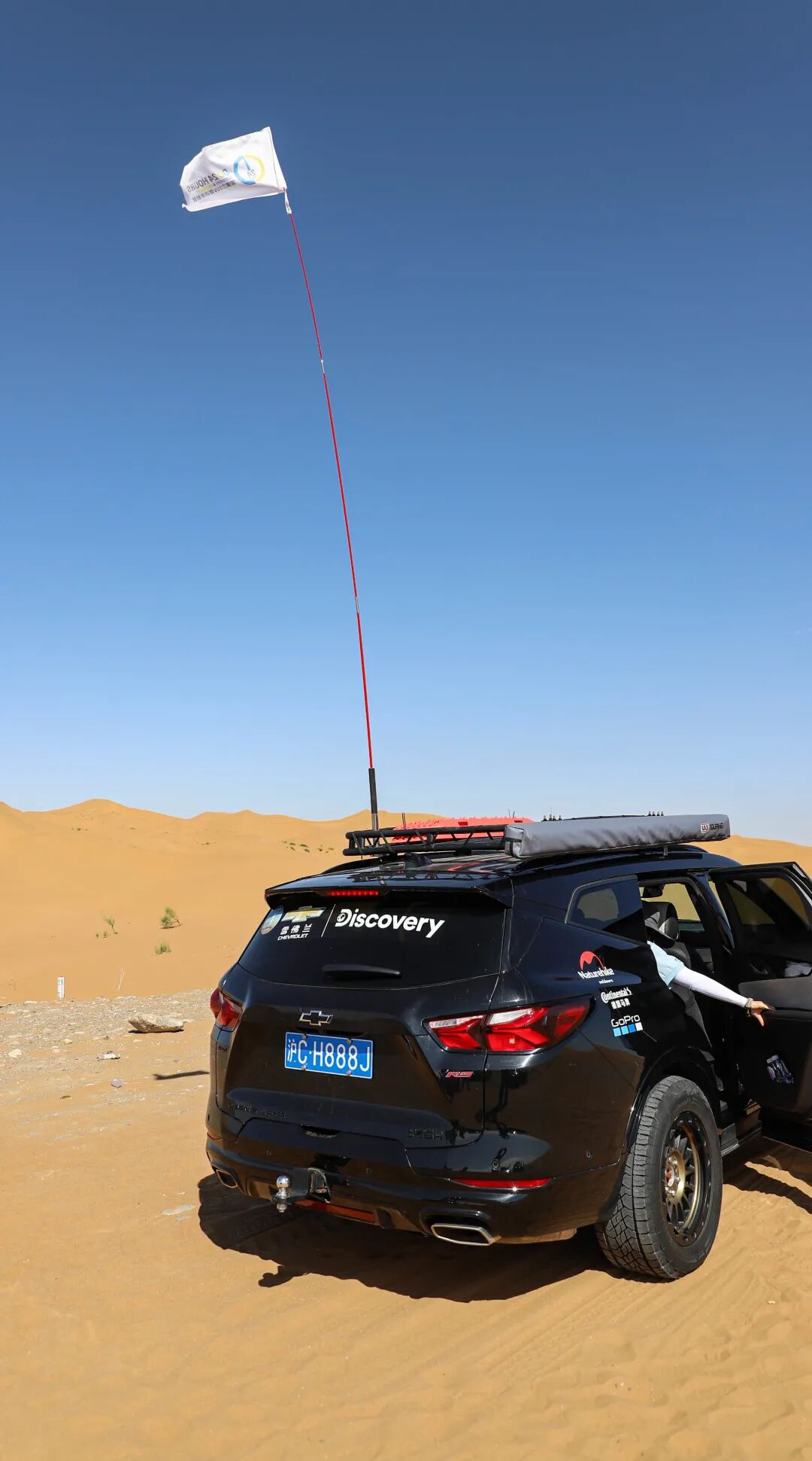 插上长长的车旗也是重要操作,表面上看它有着形象标识的作用,而在沙漠行驶时,它也有着极为关键的作用——在穿越沙峰时可以提前预知对向上坡方向的来车,而如果车辆不小心在坡后陷车,高高的旗杆也能让救援人员更快地找到被困车辆。