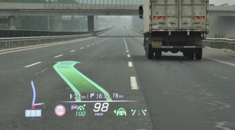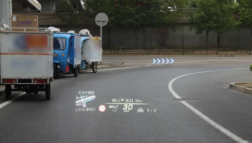 相机拍摄HUD投影容易失真,肉眼效果可参考以下动图: