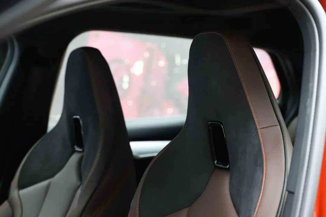 M一体式运动座椅在造型上就已经爱了,侧面的M三色滚边标识细节感绝对到位。该座椅在肩部和头部加入了Alcantara材质,手动的腿托、两组座椅记忆以及电动调节的护翼都让它无可挑剔。