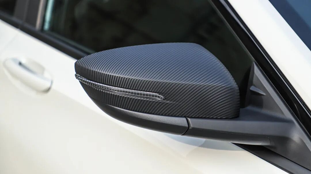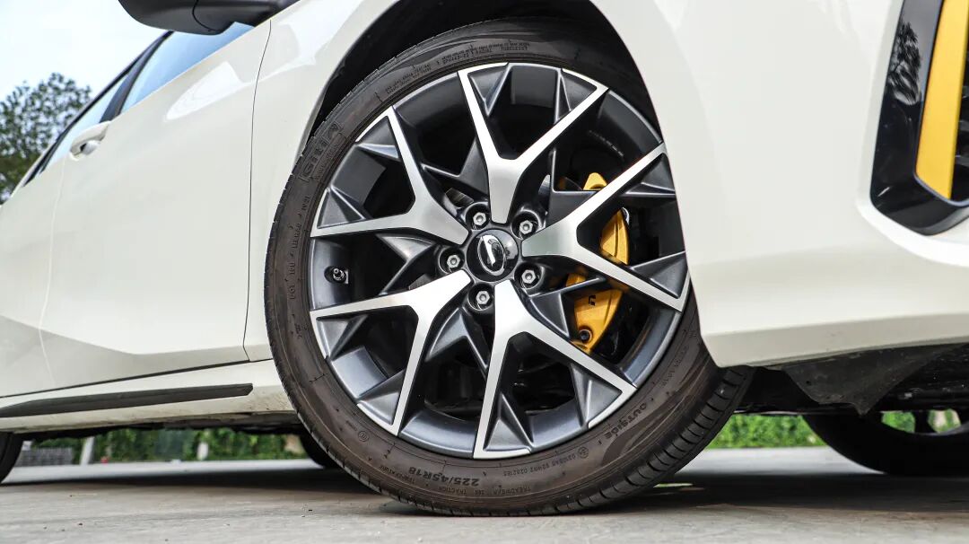 仿碳纤维纹路处理在后视镜外壳也能见到,高配车型配备的后视镜锁车折叠、后视镜加热等功能都有很强的实用性;18英寸的多辐式轮圈颇具视觉美感,黄色的卡钳罩引人注目,轮胎使用的是佳通GitiComfort F22轮胎,规格为225/45 R18,功能偏重静音与舒适性。