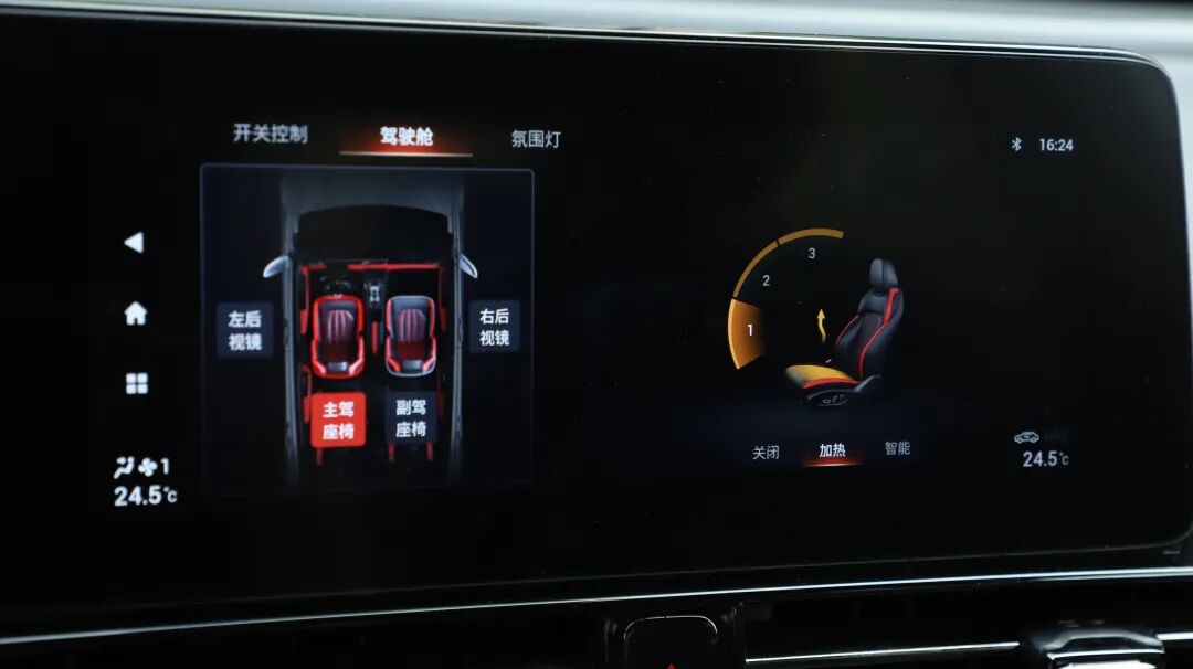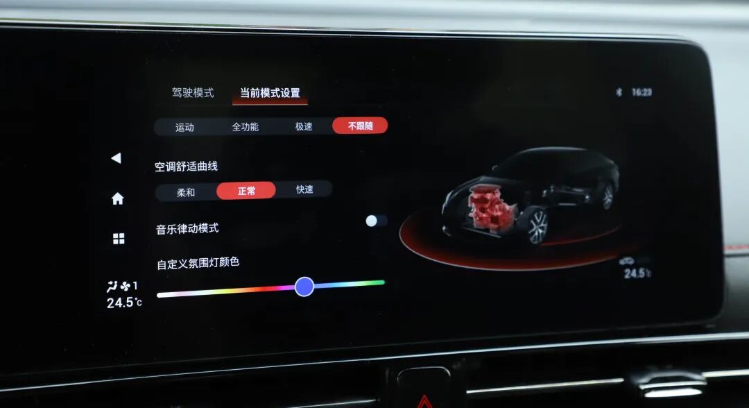 在不同驾驶模式下,您可以对当前模式的多项功能进行自定义,例如空调状态、氛围灯模式等,座椅加热功能则比较低调,并没有以实体按键的形式出现,反而隐藏在了列表深处。其他配置方面,无钥匙进入、车道保持、主动刹车、自适应巡航等功能均有配备。