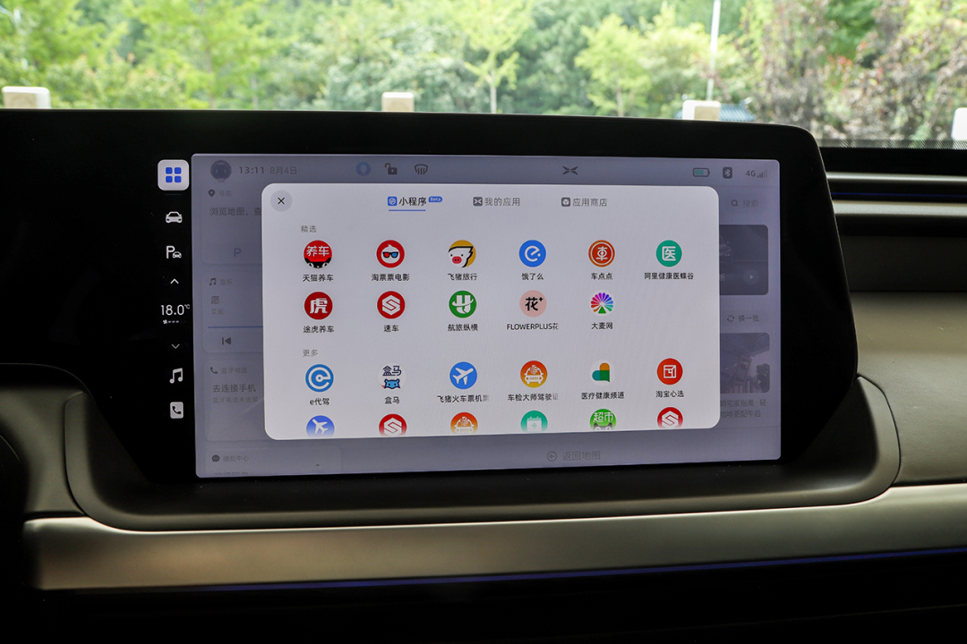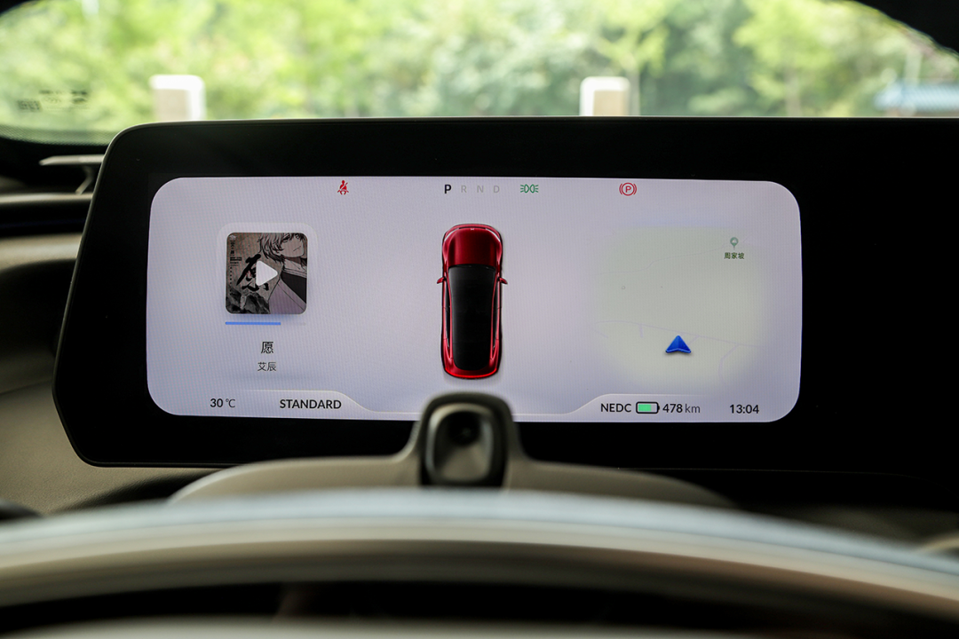 10.25英寸全液晶仪表盘显示效果一流,清晰度很高且没有反光现象,可显示地图、多媒体、续航里程等车辆信息。14.96英寸中控屏尺寸够大,UI简洁易懂,并搭载了Xmart OS 2.0车载智能系统,支持带有充电地图的导航、在线应用商店、下载相应App、OTA升级、车载小程序等功能。