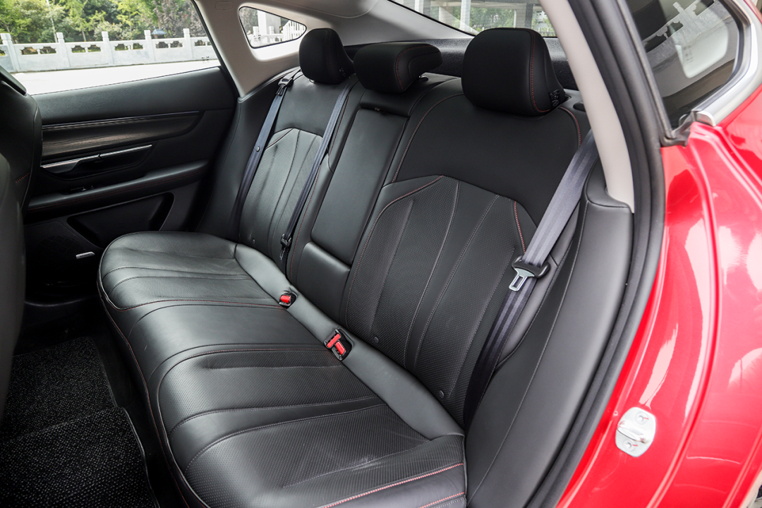 后排乘坐空间并没有显著优势,溜背线条影响了后排乘客的头部空间,两段式全景天窗在一定程度上增加了车内的通透感,整体表现虽然不算宽敞,但以家用的标准来说,乘坐空间基本够用。
