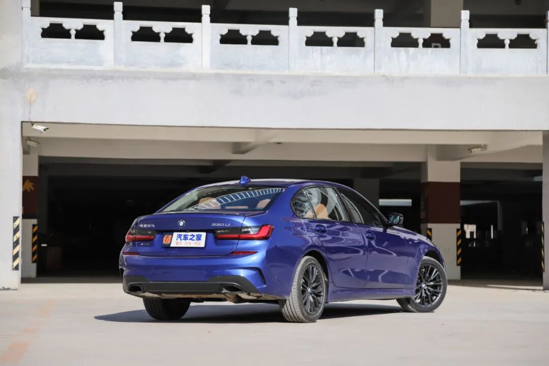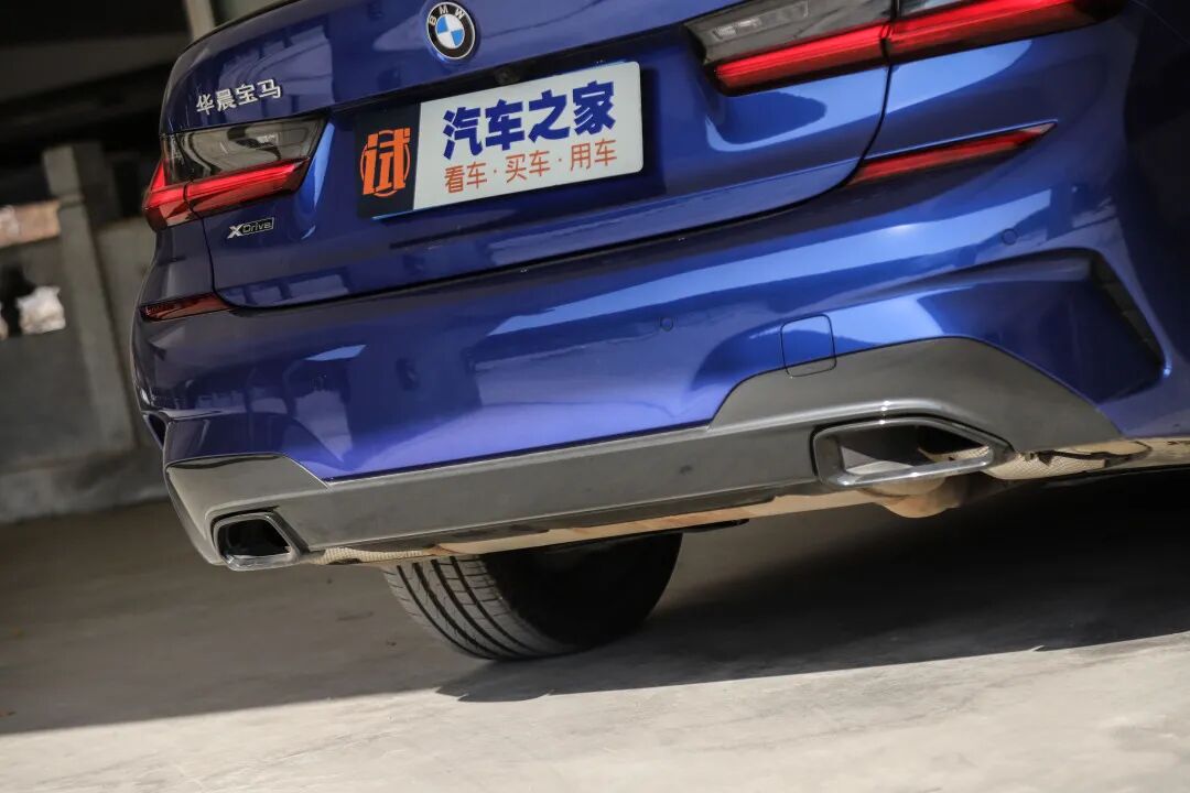 来到车尾,这台指导价40.99万元的顶配车型真的太没有意思了!我们只能从黑色鸭舌扰流板和熏黑排气尾喉区分这是一台M运动曜夜版本;从330Li和xDrive的尾标上分辨这还是一台顶配四驱车型,而这些“样子货”(标识、尾喉、扰流板)不到1000元就能搞定。