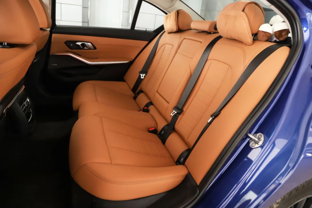 来到后排,加长坐垫长度、专属头部软枕这样的小细节让这台车的乘坐质感更像一台中大型车,身高182cm的我坐进后排,腿部空间可以达到2拳多,这可能是历代3系或者同价位跑车无法做到的空间体验。