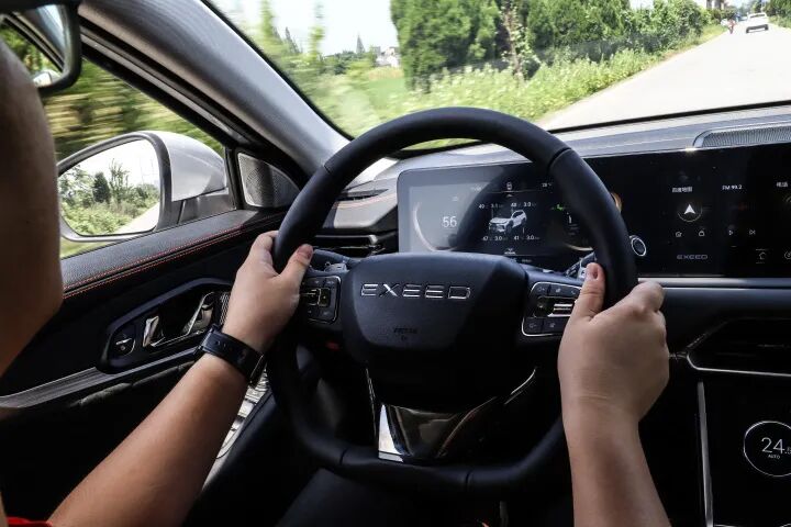 整个底盘的设定毫不意外的是舒适调校取向,充满韧劲儿的悬架面对路面大小的颠簸都能尽力去帮你抚平,并且没有多余跳动,这也是工程师在研发时一直追求的贴地感。稍显不足的则是侧向支撑性,如果你用连续的重心转移来挑逗它,它会立刻用较大的侧倾来回应你。