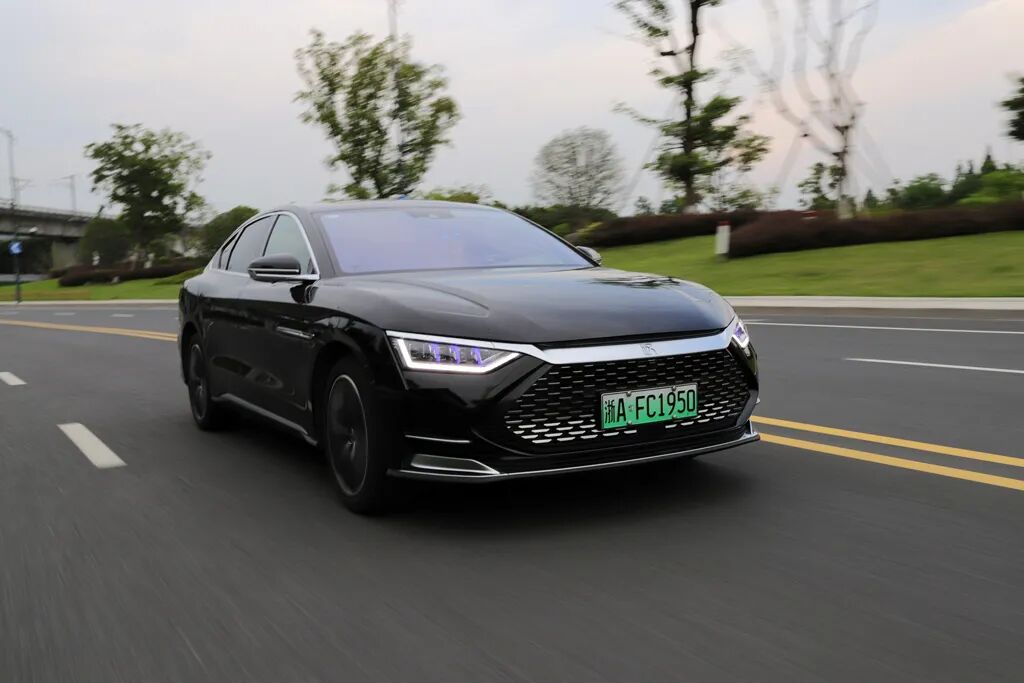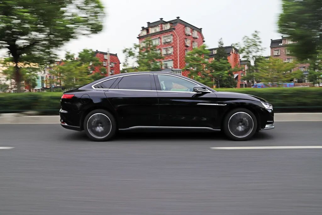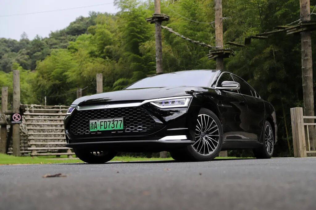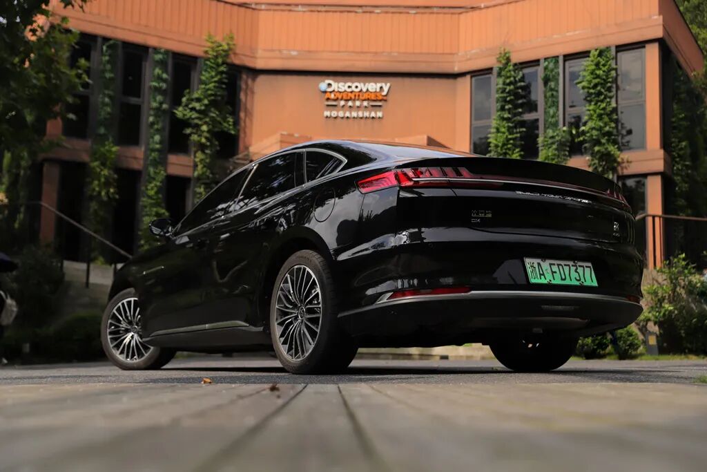 实拍车型的黑色外观,加上中国风元素让人直观感觉到公务车的气质,有些时候,我经常有些很中二的想法,比如用插混的比亚迪当警车,单凭车尾帖的加速时间就足以震慑那些居心不良的人——想跑,你跑得了吗?